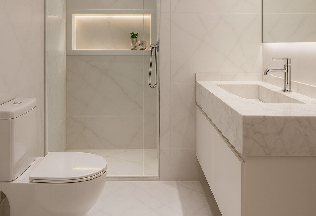 Nossas soluções atendem desde cozinhas e banheiros até áreas gourmet, escadas, pisos e espaços corporativos. Combinamos tradição e inovação para entregar revestimentos que unem luxo e praticidade, elevando o valor estético e funcional de cada projeto.